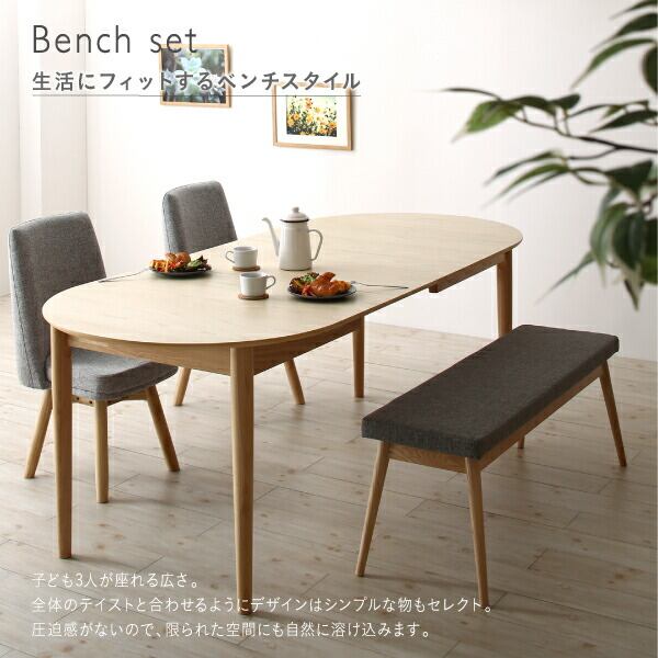 天然木アッシュ材 伸縮式オーバルダイニング 4人 5点セット(テーブル+チェア4脚) W160-210