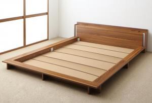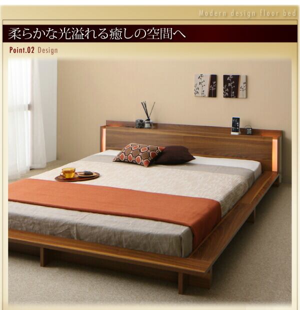 モダンライト・棚・コンセント付きデザインフロアローベッド ベッドフレームのみ クイーン(Q×1) 組立設置付