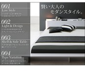 モダンライト・棚・コンセント付きデザインフロアローベッド スタンダードボンネルコイルマットレス付き クイーン(Q×1) 組立設置付
