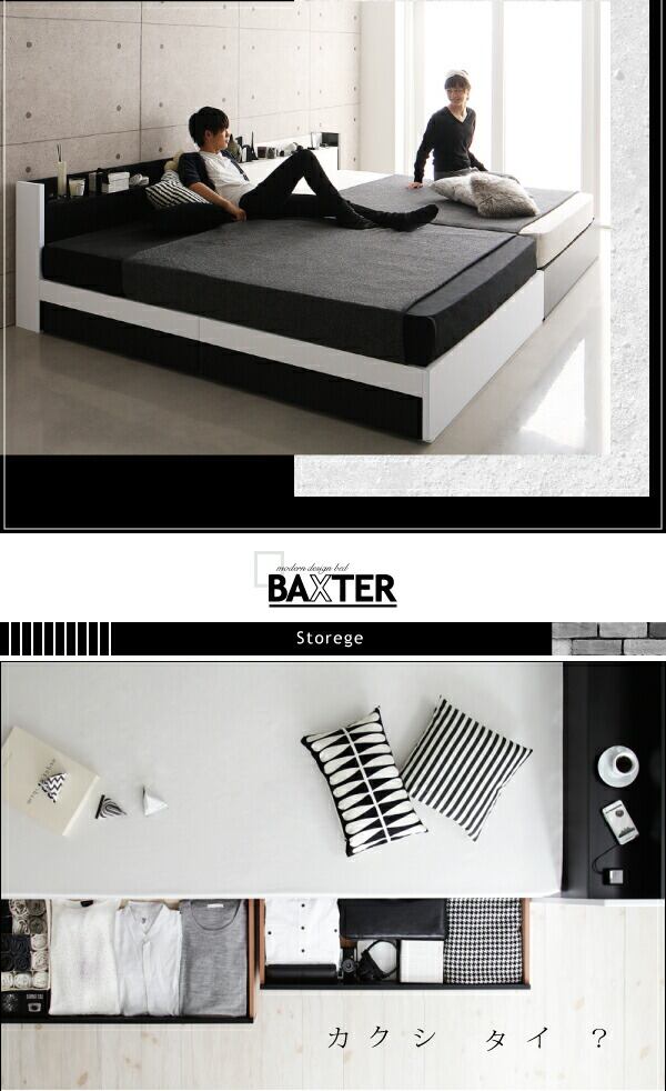 棚・コンセント・収納付き大型モダンデザインベッド ベッドフレームのみ ワイドK240(SD×2)