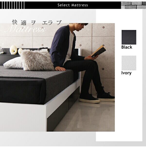 棚・コンセント・収納付き大型モダンデザインベッド スタンダードボンネルコイルマットレス付き ワイドK240(SD×2)