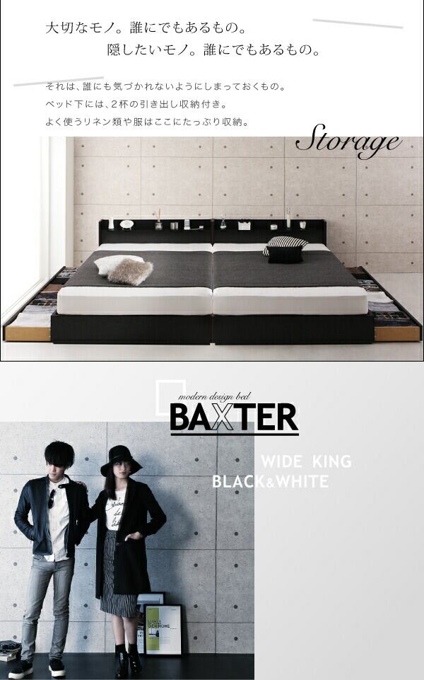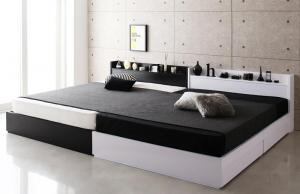 棚・コンセント・収納付き大型モダンデザインベッド スタンダードボンネルコイルマットレス付き ワイドK280(D×2)