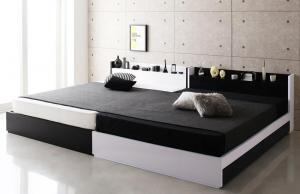 棚・コンセント・収納付き大型モダンデザインベッド スタンダードポケットコイルマットレス付き ワイドK240(SD×2)