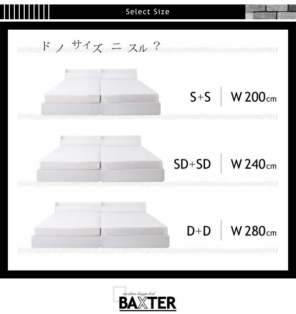 棚・コンセント・収納付き大型モダンデザインベッド スタンダードボンネルコイルマットレス付き ワイドK280(D×2) 組立設置付