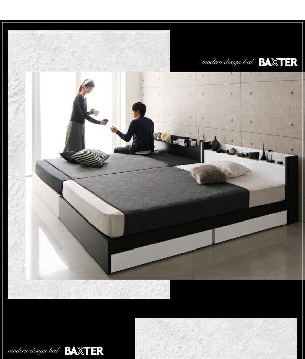 棚・コンセント・収納付き大型モダンデザインベッド スタンダードポケットコイルマットレス付き ワイドK240(SD×2) 組立設置付