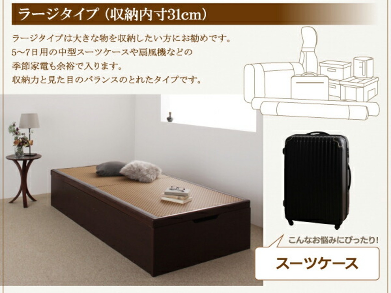 組立設置付 美草・日本製_大容量畳跳ね上げベッド シングル 深さグランド