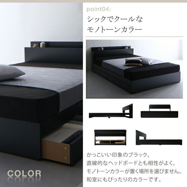 棚・コンセント付き収納ベッド スタンダードポケットコイルマットレス付き ダブル