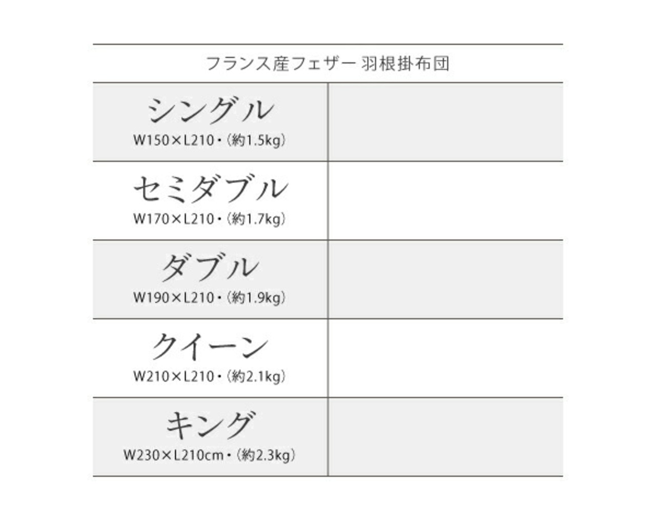 フランス産フェザー羽根掛布団 掛け布団 セミダブル