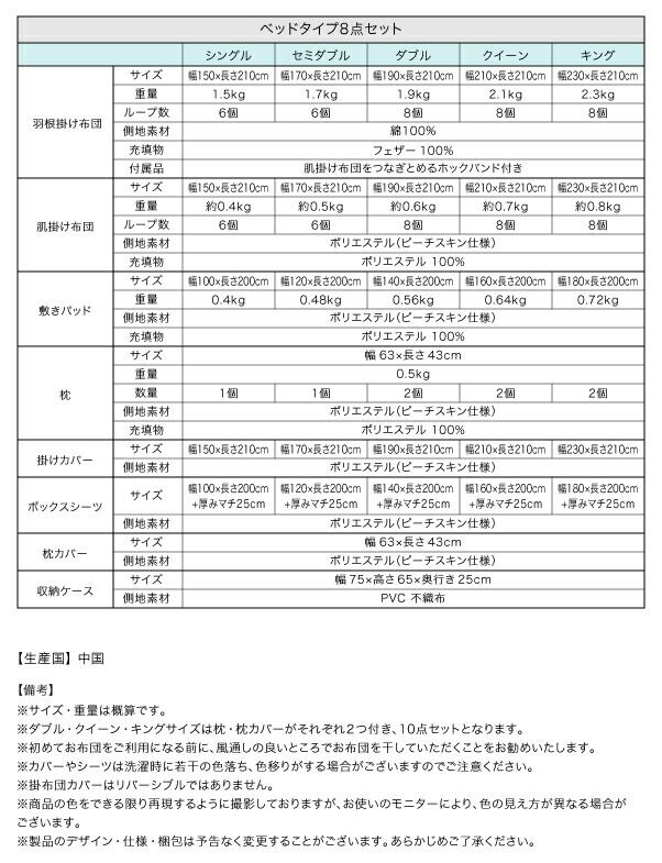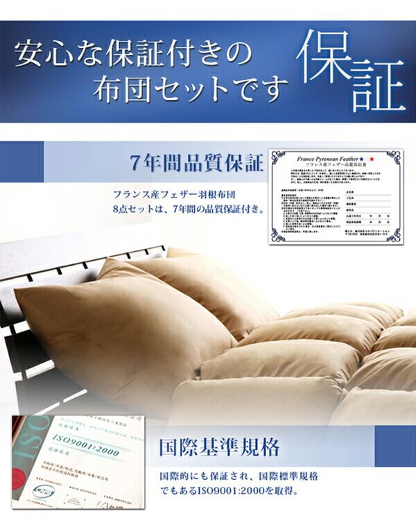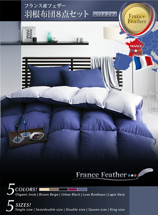 フランス産フェザー羽根布団8点セット ベッドタイプ Plume プルーム セミダブル8点セット