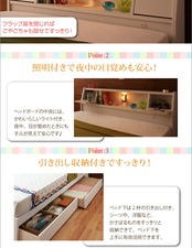 照明・コンセント付き収納ベッド ポケットコイルマットレス付き ダブル