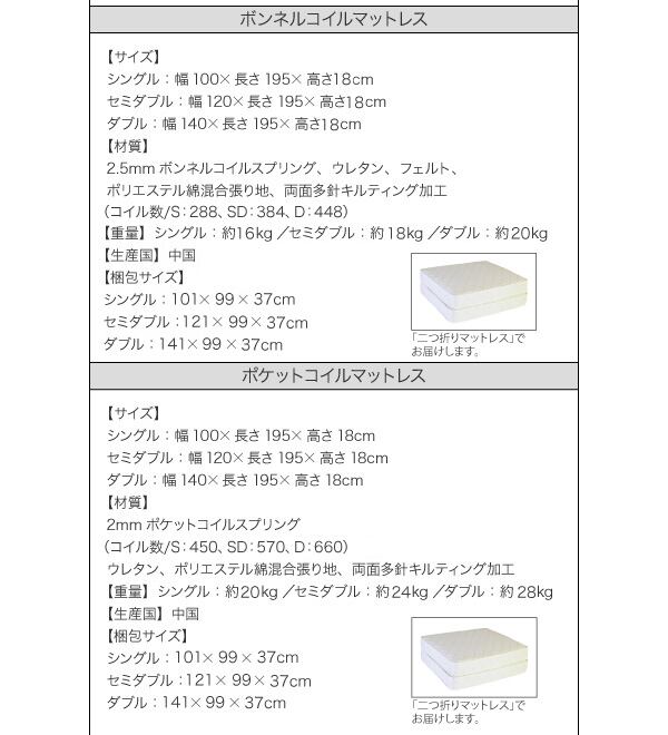 ラテックス入り国産ポケットコイルマットレス付き ダブル