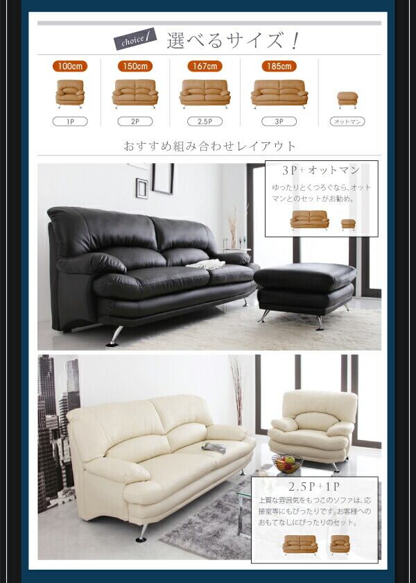 ハイバックソファ レザータイプ ソファ スチール脚 3P