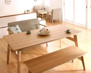 天然木北欧スタイル ソファダイニング 3点セット(テーブル+2Pソファ1脚+ベンチ1脚) W160