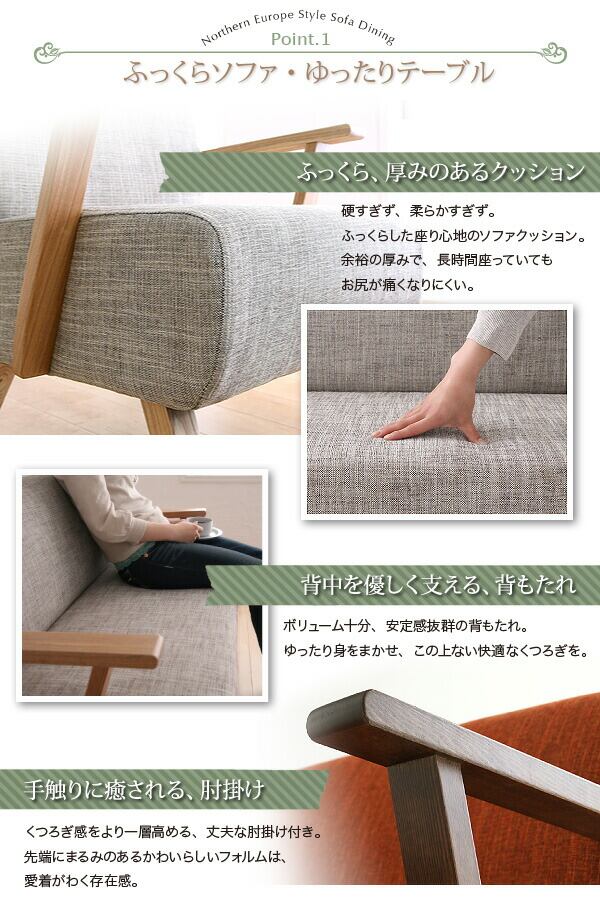 天然木北欧スタイル ソファダイニング 5点セット(テーブル+チェア4脚) W160