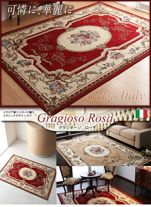 イタリア製ジャガード織りクラシックデザインラグ 175×240cm