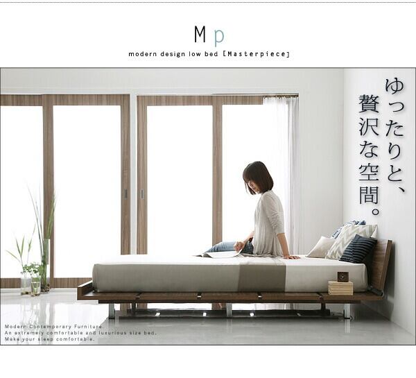 モダンデザインローベッド スタンダードボンネルコイルマットレス付き ワイドステージ ダブル フレーム幅180