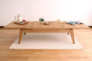 ワイドに広がる伸長式!天然木エクステンションリビングローテーブル W120-180