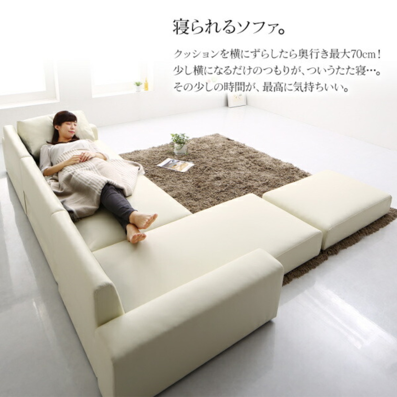 フロアコーナーカウチソファ ソファ&オットマンセット ロータイプ 3.5P