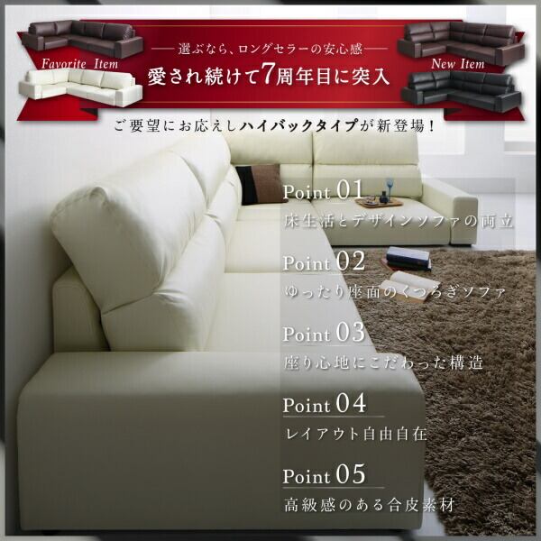 フロアコーナーソファ ソファ&オットマンセット ハイタイプ 3.5P