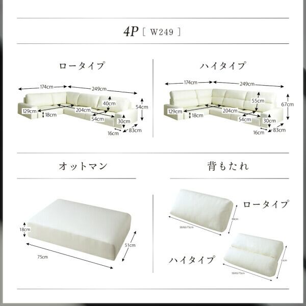 フロアコーナーソファ ソファ&オットマンセット ハイタイプ 4P