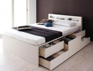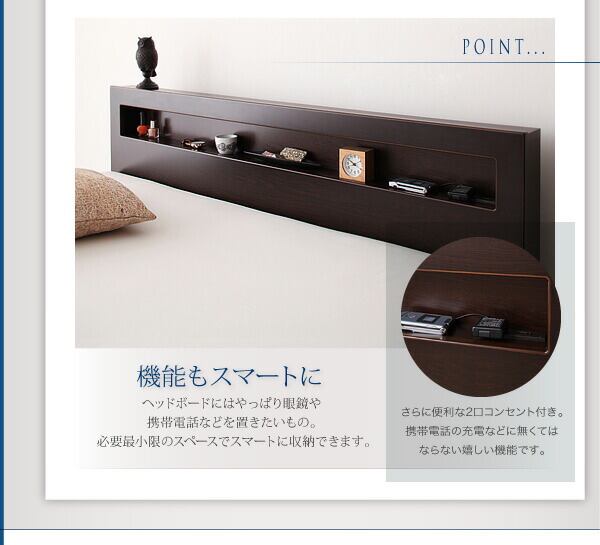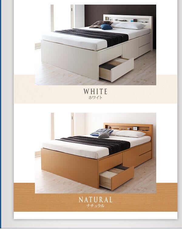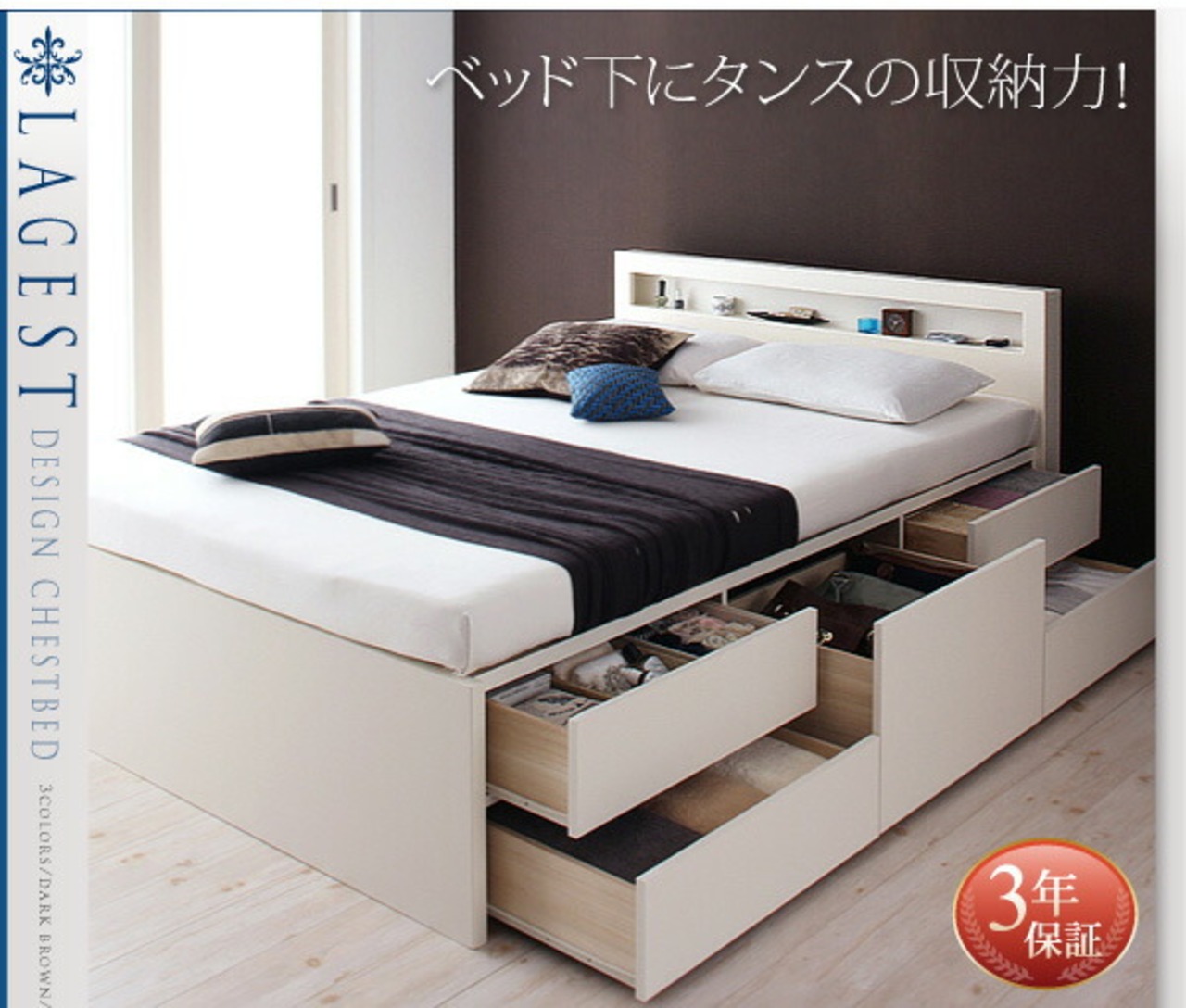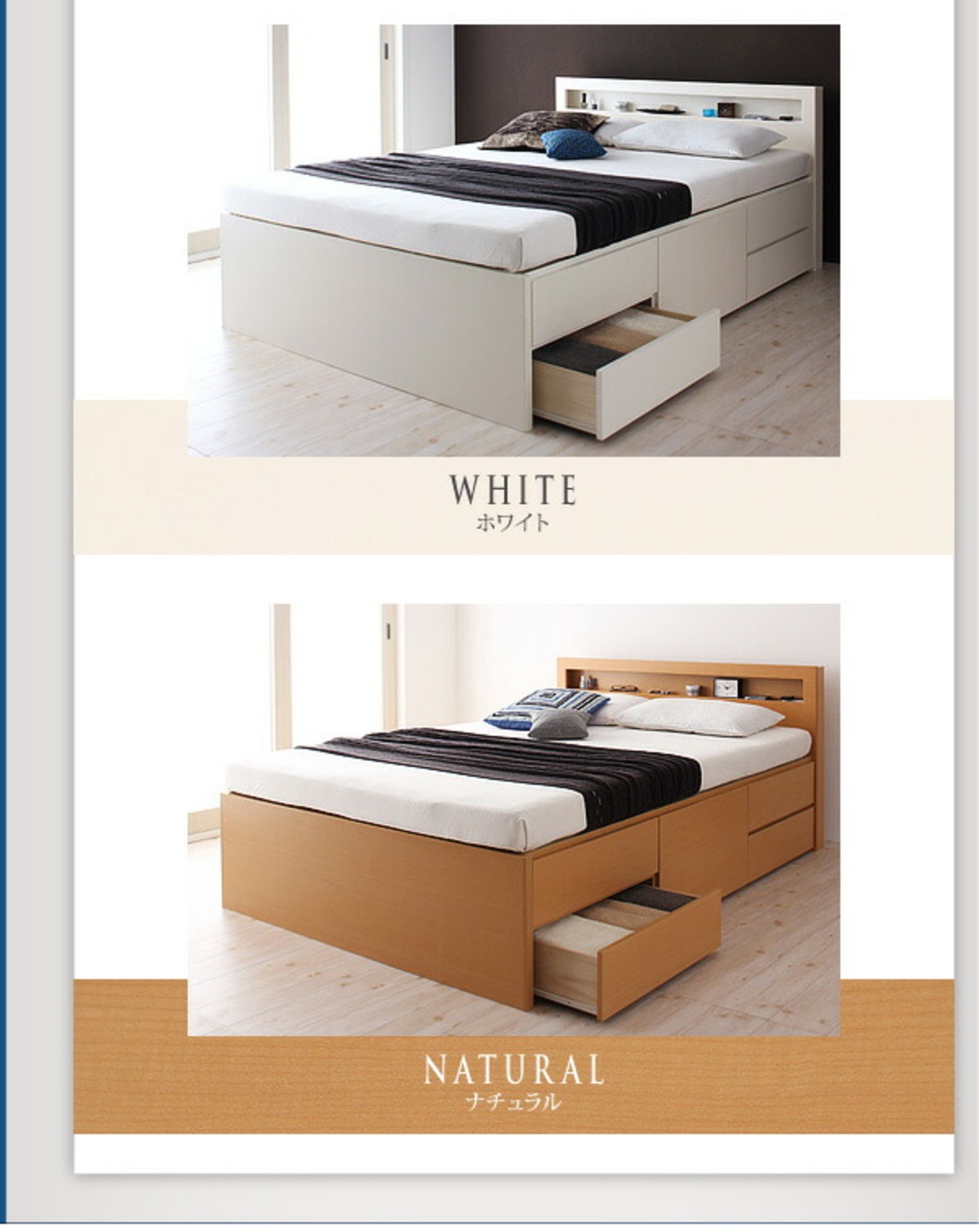 お客様組立 棚・コンセント付きチェストベッド 薄型抗菌国産ポケットコイルマットレス付き シングル