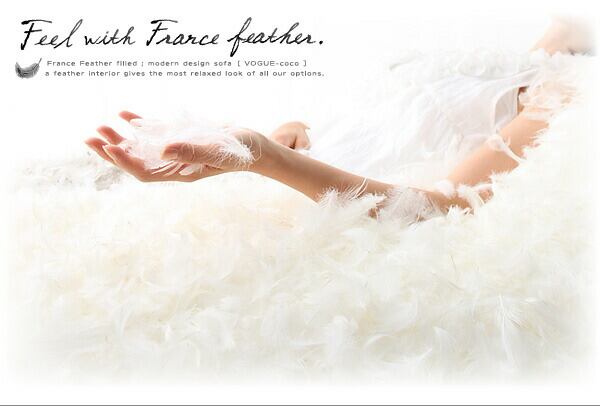 フランス産フェザー入りモダンデザインソファ 幅175cm