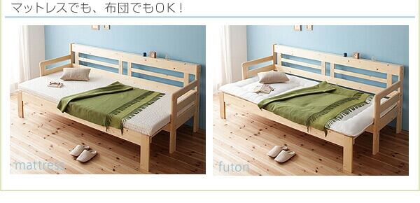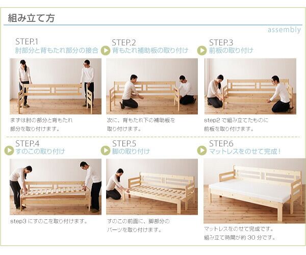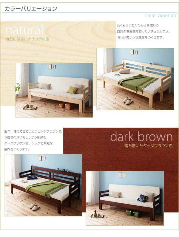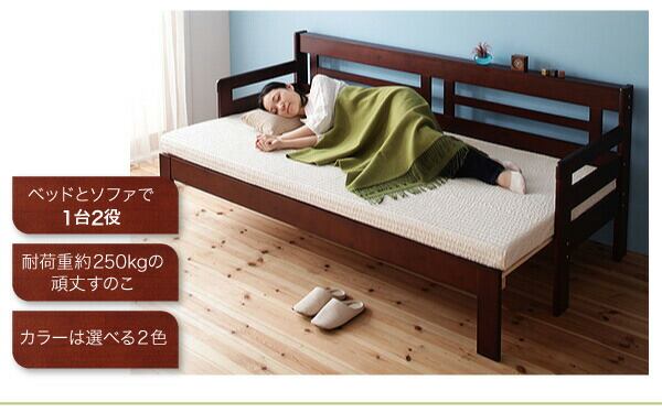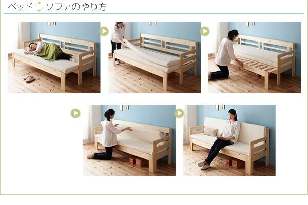 省スペース!横幅伸縮の天然木すのこソファベッド マットレス付き 3.5P