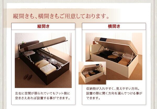 お客様組立 開閉タイプが選べるガス圧式跳ね上げ収納ベッド マルチラススーパースプリングマットレス付き 縦開き シングル 深さレギュラー