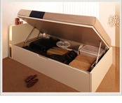 お客様組立 開閉タイプが選べるガス圧式跳ね上げ収納ベッド 薄型プレミアムボンネルコイルマットレス付き 縦開き シングル 深さラージ
