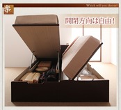 お客様組立 開閉タイプが選べるガス圧式跳ね上げ収納ベッド 薄型スタンダードボンネルコイルマットレス付き 横開き シングル 深さレギュラー