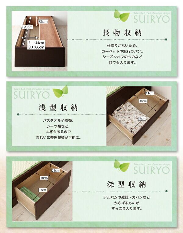 お客様組立 シンプルモダン畳チェストベッド 国産畳 ベッドガードなし シングル