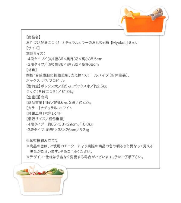 お片づけが身につく ナチュラルカラーのおもちゃ箱 Mycket ミュケ 4段