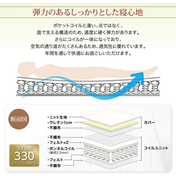 ボンネルコイルマットレスタイプ シングル ショート丈脚30cm