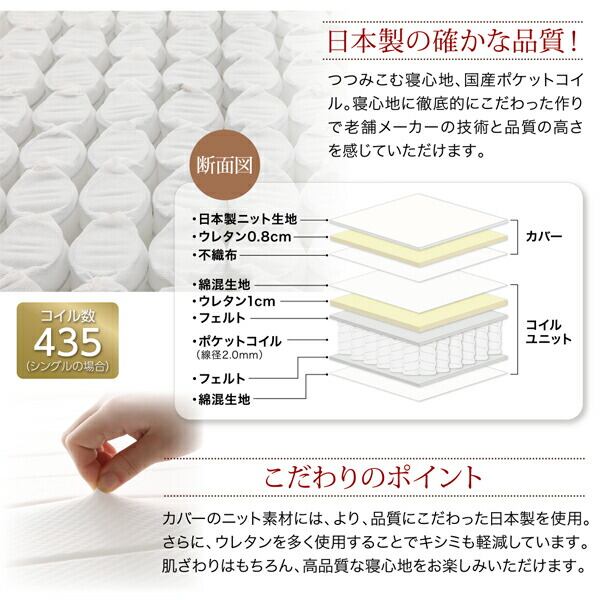 国産ポケットコイルマットレスタイプ シングル ショート丈脚30cm