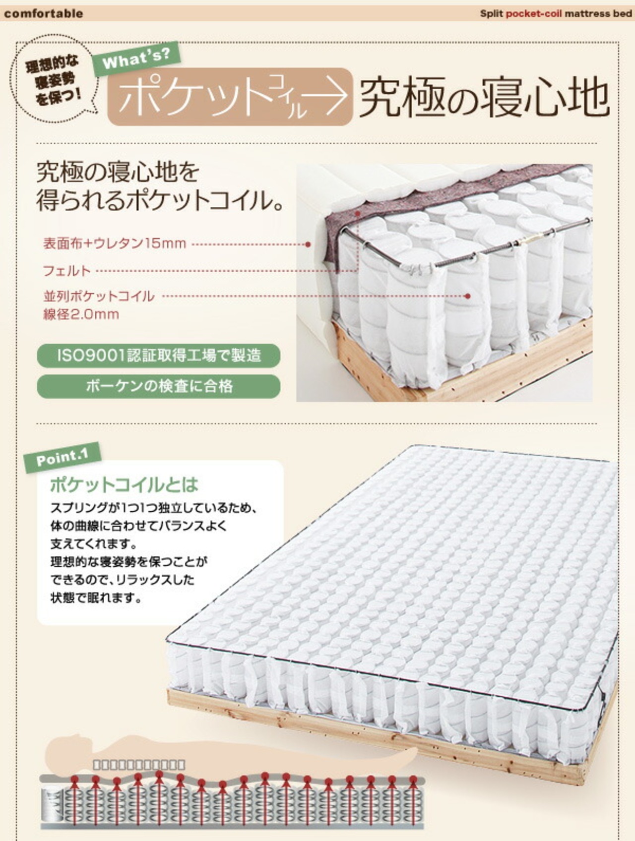ポケットコイルマットレスタイプ シングル 脚15cm