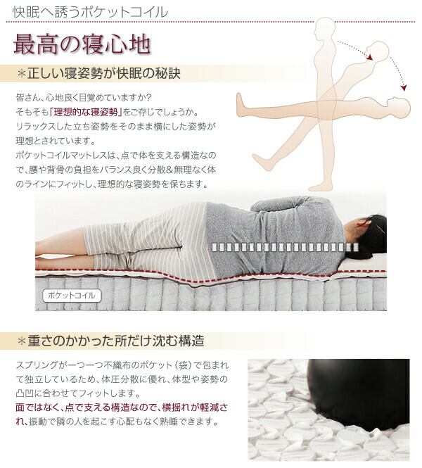 新・国産ポケットコイルマットレスベッド マットレスベッド ややかため:線径1.8mm ダブル 脚30cm
