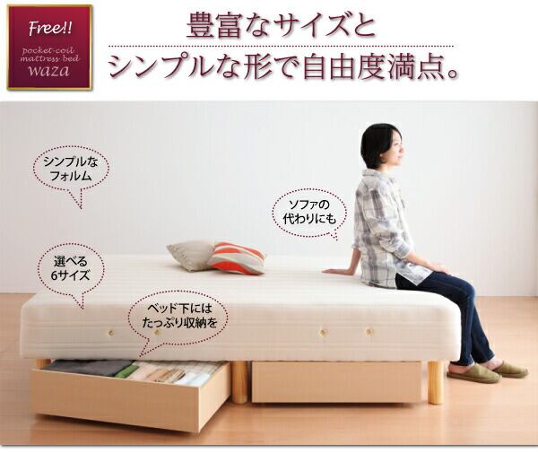 新・国産ポケットコイルマットレスベッド マットレスベッド かため:線径2.0mm セミダブル 脚15cm