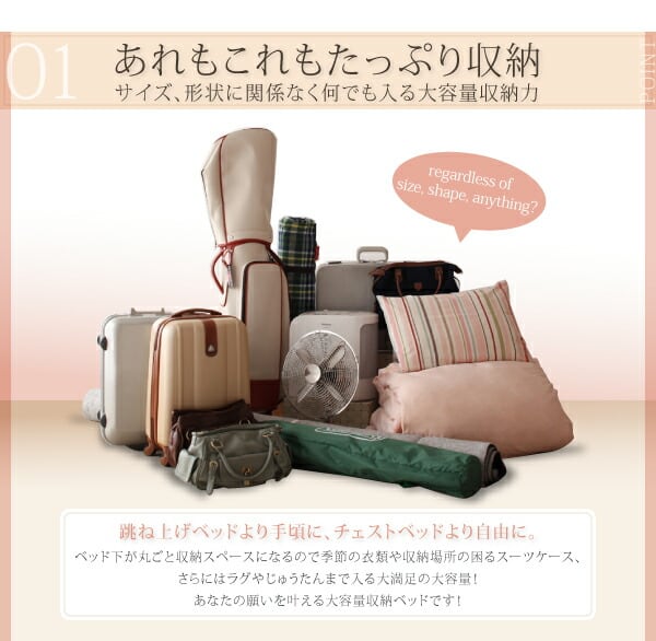 お客様組立 大容量収納庫付きすのこベッド HBレス 薄型スタンダードポケットコイルマットレス付き シングル 深さレギュラー