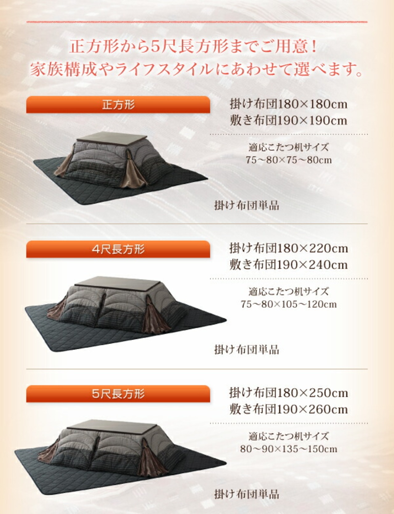 上掛け単品 5尺長方形(90×150cm)天板対応