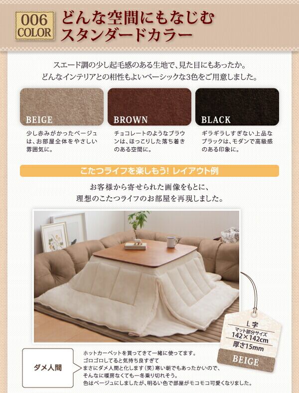 こたつに合わせるフロアコーナーソファ コの字 マット部分サイズ 190×190cm 厚さ40mm