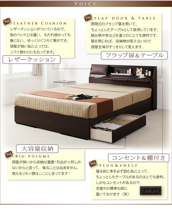 クッション・フラップテーブル付き収納ベッド 国産ボンネルコイルマットレス付き ダブル