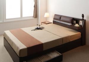 クッション・フラップテーブル付き収納ベッド ポケットコイルマットレス付き ダブル