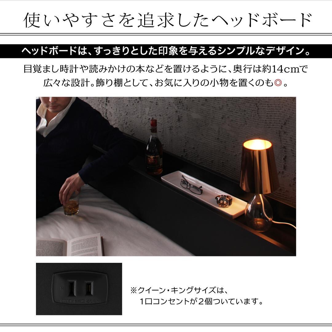 棚・コンセント付きフロアベッド スタンダードポケットコイルマットレス付き クイーン(Q×1)