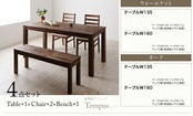 5点セット(テーブル+チェア3脚+ベンチ1脚) ウォールナット PVC座 W180