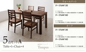 5点セット(テーブル+チェア4脚) ウォールナット 板座×PVC座 W160