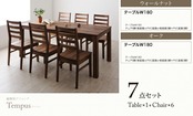 総無垢材ダイニング 7点セット(テーブル+チェア6脚) オーク 板座×PVC座 W180