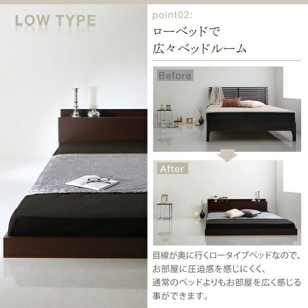 棚・コンセント付きフロアベッド スタンダードボンネルコイルマットレス付き ダブル