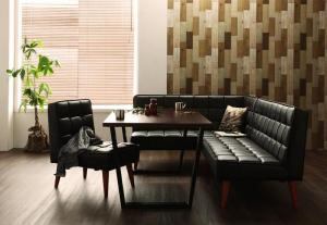 ヴィンテージスタイル・リビングダイニングセット 4点セット(テーブル+ソファ1脚+アームソファ1脚+チェア1脚) 左アーム W120