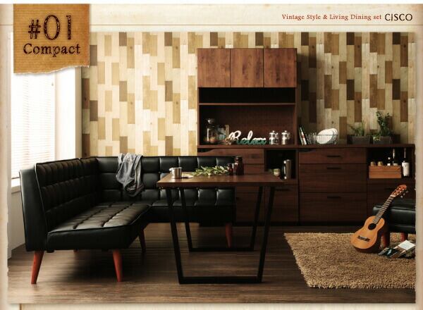 ヴィンテージスタイル・リビングダイニングセット 5点セット(テーブル+ソファ1脚+アームソファ1脚+チェア1脚+ベンチ1脚) 左アーム W150