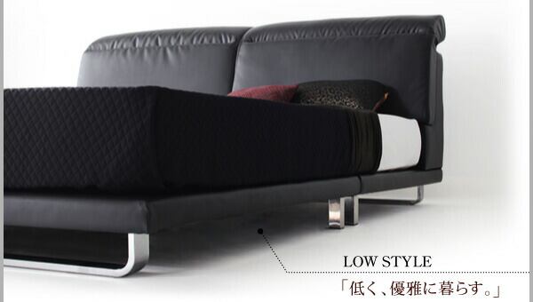 リクライニング機能付き・モダンデザインローベッド マルチラススーパースプリングマットレス付き ダブル
